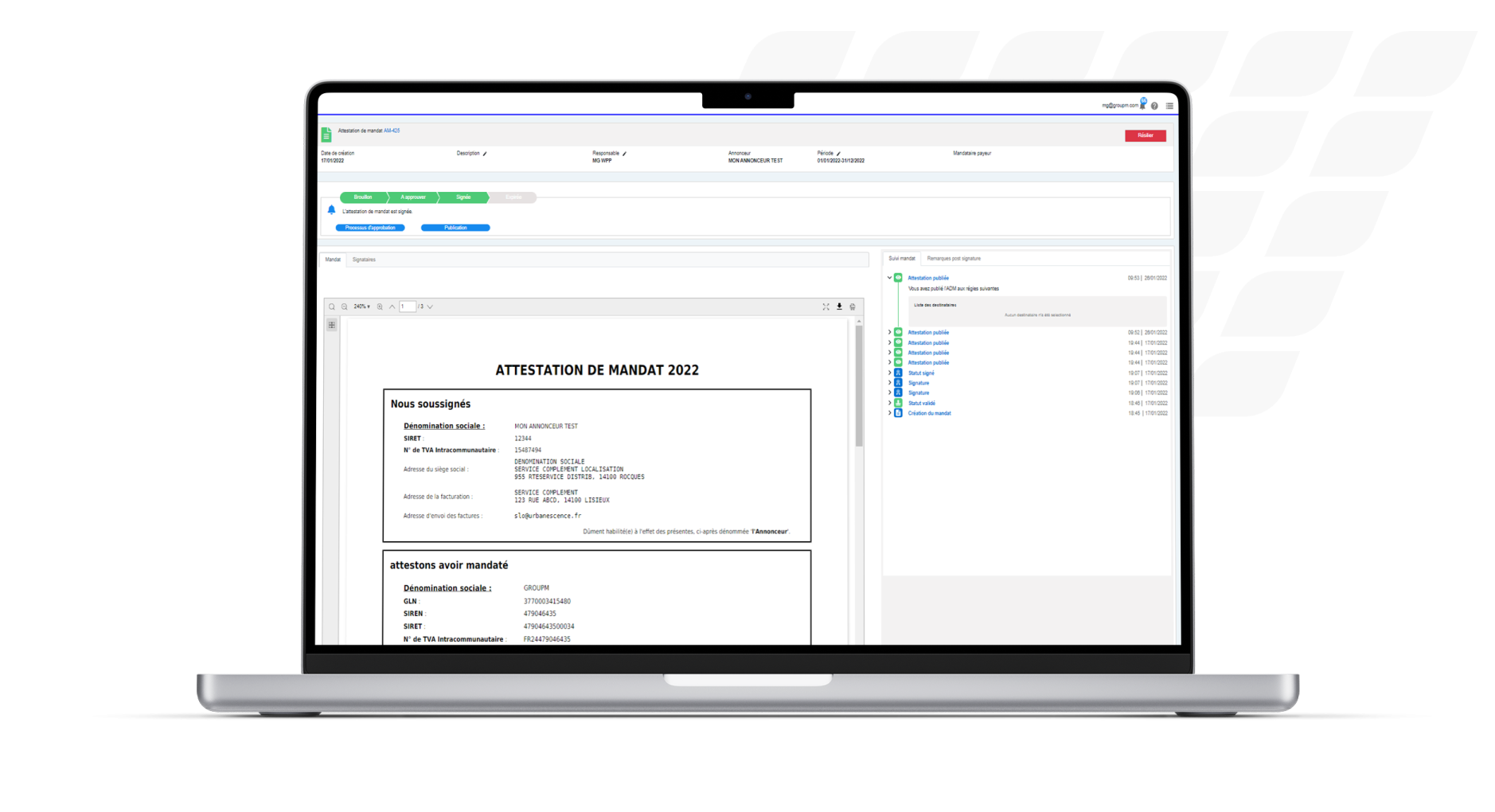 La solution répond aux exigences légales en vigueur et assure la sécurisation et la confidentialité des données et des documents.